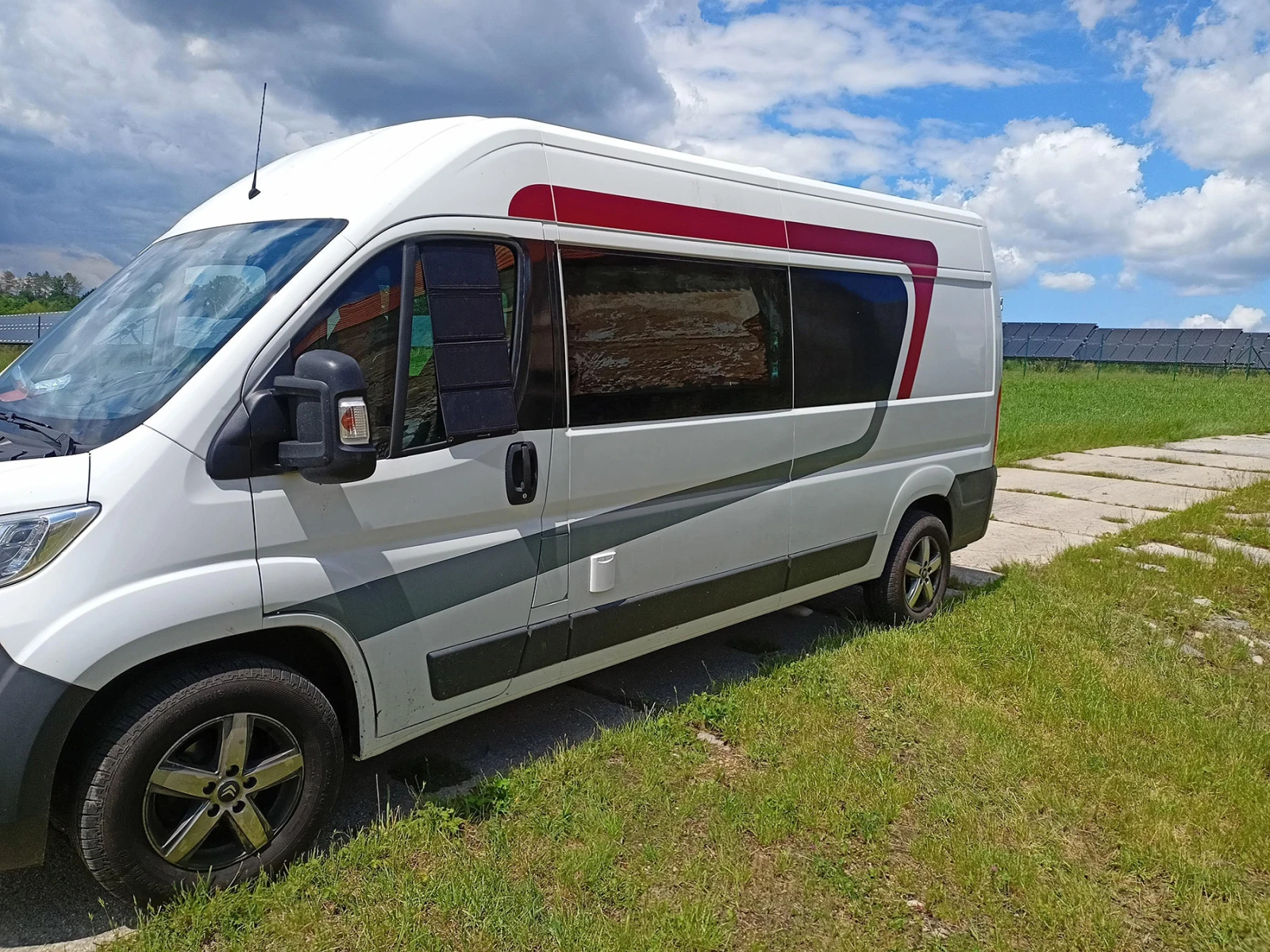Než som namontoval regulérny panel na dodávku, používal som na nabíjanie tento skladací. Buď som Crossio SolarPower 28W 3.0 rozložil na palubovku alebo privrel do okienka. Jasné, dá sa nabíjať aj zo štartovacej baterky, ale pri mojom aute to bez kľúča nešlo, a navyše je zbytočné si ju vybíjať, keď svieti slniečko. Panel zároveň funguje ako tienidlo.