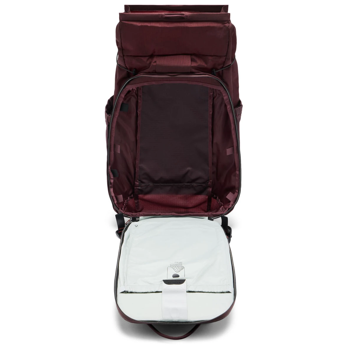 Vnútorný priestor je modulárny a kompatibilný s organizérmi (napr. Camera Cubes) – pojme notebook do 16″ alebo hydratačný vak 3 l. Externé vrecká Flex Pockets™ a systém popruhov Cord Hook™/Cord Rails™ umožňujú pripojiť vybavenie na vonkajšiu stranu.