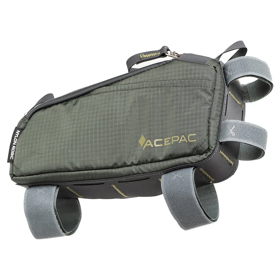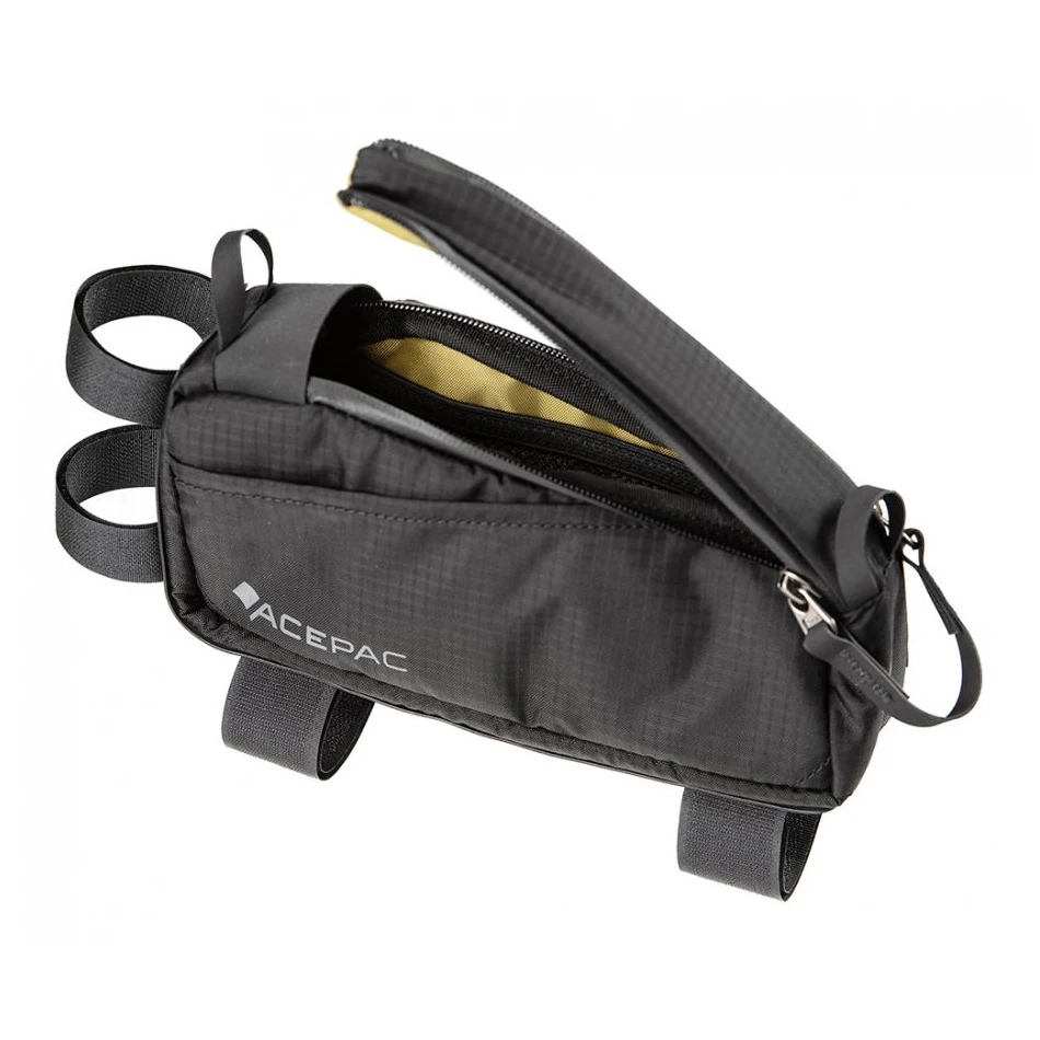 Taška na rám Acepac Fuel Bag MKIII M patrí na hornú rámovú rúrku, objem tejto tašky je 0,8 litra a využiť ju môžete na často používané veci či doklady. Hlavný materiál je Nylon Robic (PU záter 1500 mm H2O) - odolná a ľahká syntetická tkanina. Jednoduchý prístup do tašky vám zaistia vodeodolné zipsy YKK. Je tu tiež možnosť otvoriť oba zipsy súčasne jednou rukou a to vďaka spojeným jazdcom zipsov Hypalonovým pútkom.