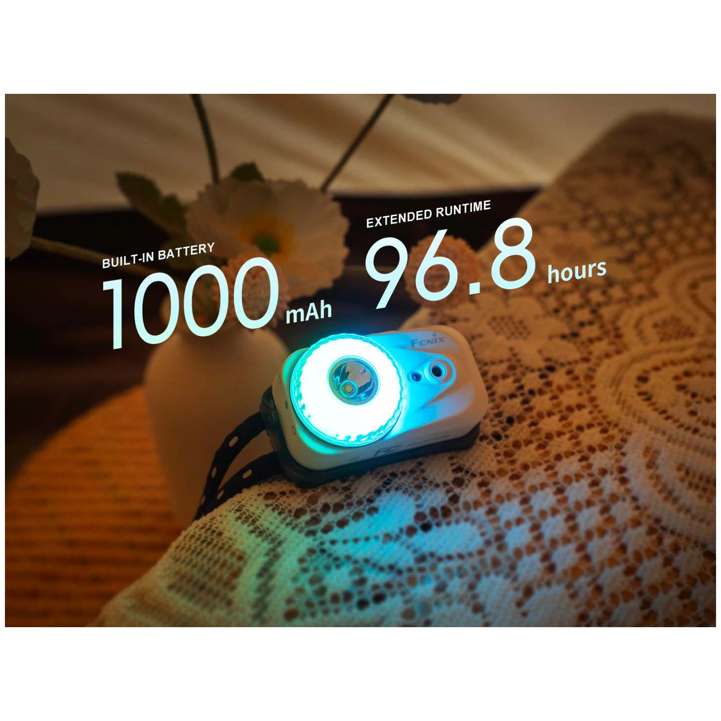 - Štyri režimy bieleho svetla: 500 lúmenov (2,8 hodiny) -> 150 lúmenov (5,5 hodiny) -> 30 lúmenov (23 hodín) -> 5 lúmenov (96,8 hodiny).