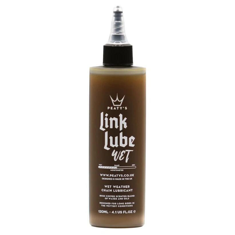 Peaty´s LinkLube Wet je mazivo na reťaze, ktoré je prispôsobené pre skutočne mokré a špinavé podmienky. Je vyrobený zo zmesi olejov, voskov a účinných inhibítorov korózie s vôňou írskej kávy. Zabezpečuje hladký a tichý chod reťaze. Linklube je navrhnutý pre požiadavky svetového seriálu Enduro (EWS). Dlhý vývoj z neho robí favorita pre všetkých jazdcov EWS, XC, cestných a cyklokrosových pretekov. Linklube sa nesmie nanášať na brzdy alebo brzdové doštičky.
