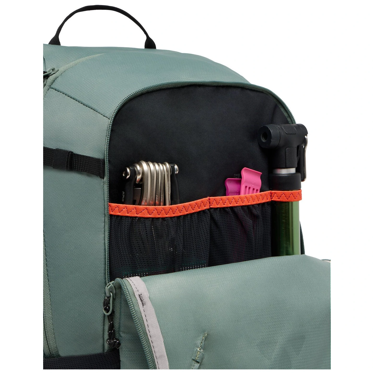 predné vrecko na náradie, ideálne na uloženie pumpy, náradia a náhradnej hadičky