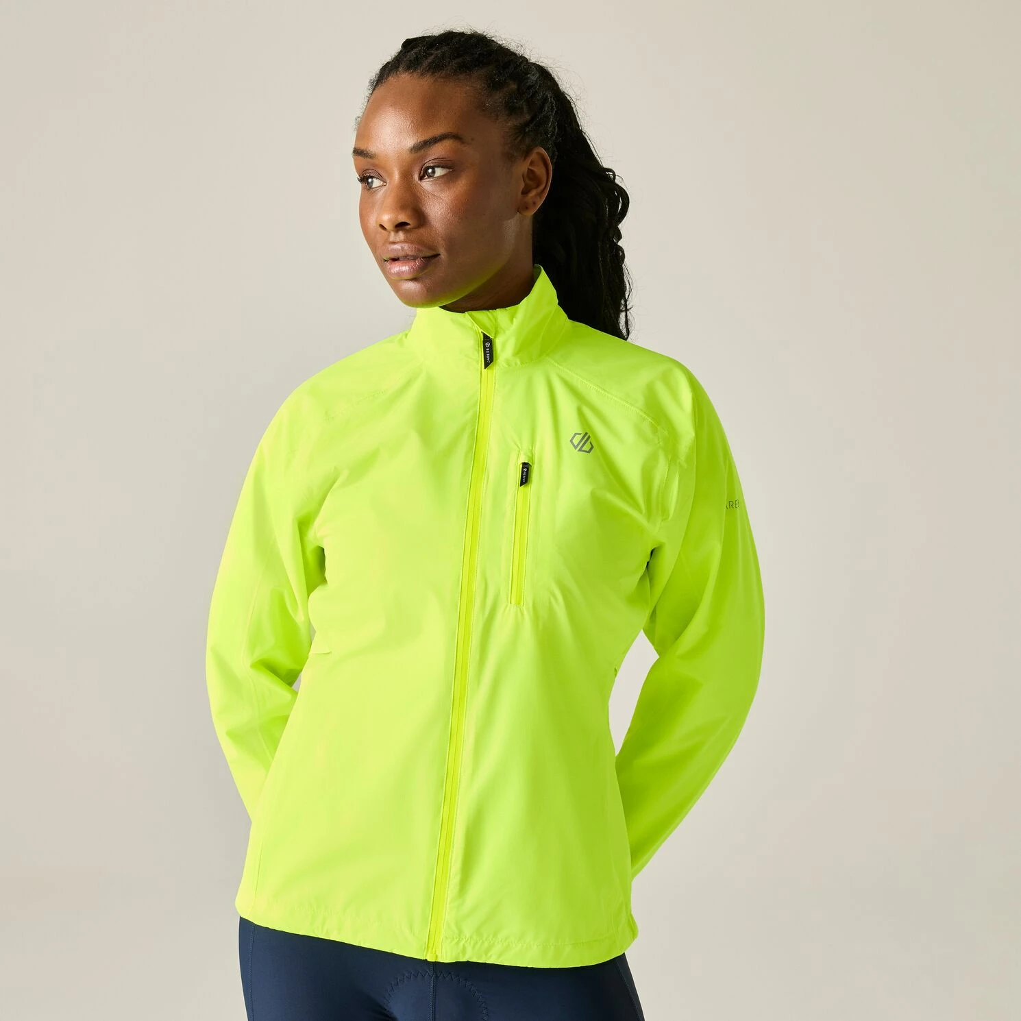 Dámska cyklistická bunda Dare 2b Tor Jacket je navrhnutá pre jazdu v daždi, vetre aj za zlých viditeľnostných podmienok. Vďaka technológii Ride Fit Pro podporuje ergonomickú jazdnú pozíciu a zaisťuje pohodlie aj voľnosť pohybu pri každom šliapnutí.