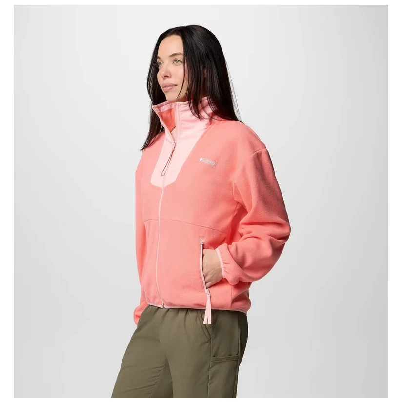 Dámska mikina Columbia Sequoia Grove™ Full Zip Fleece je ideálna voľba pre chladnejšie dni v prírode aj v meste. Vyrobená zo 100% recyklovaného polyesterového fleecu, ponúka nielen hrejivosť a komfort, ale aj šetrnosť k životnému prostrediu. Celoprepínací zips umožňuje jednoduché vrstvenie, zatiaľ čo zipper pull uľahčuje manipuláciu aj v rukaviciach.