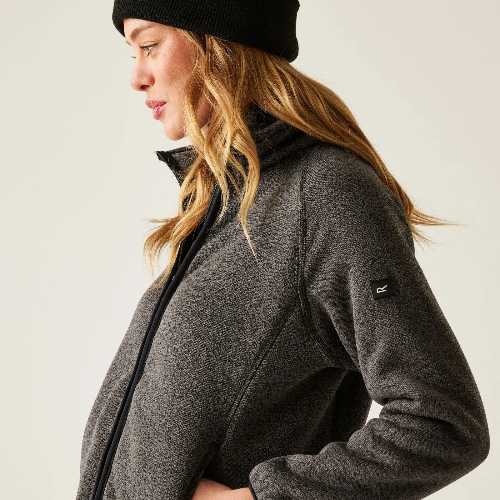 - 100% polyesterový fleece s vysokým vlasom a úpletovým efektom