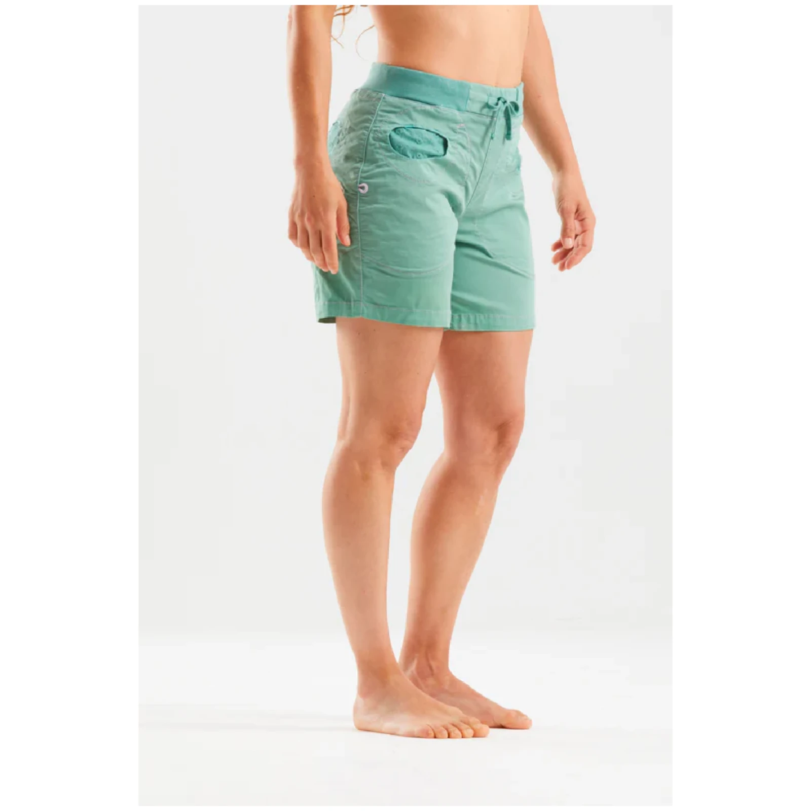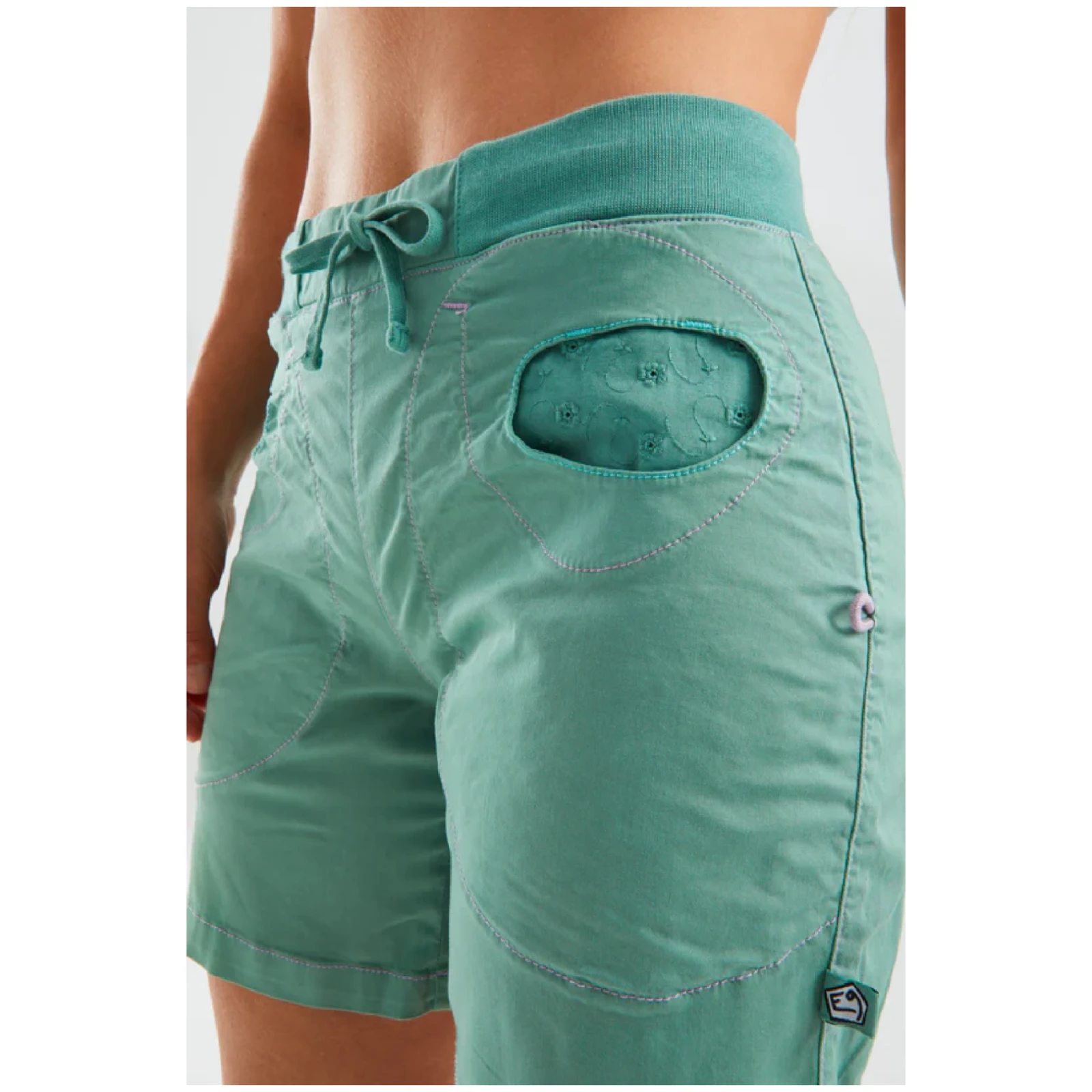 Dámske kraťasy ležérneho strihu Mix Short Women's značky E9 sú vyrobené zo strečovej tkaniny zo 75% bambusových vlákien, 2% organickej bavlny a 3% elastanu. Kraťasy sú veľmi komfortné, majú elastický pás so šnúrkou na sťahovanie a štýlové vrecká s oválnym vstupom s vnútrom v kontrastnej farbe s potlačou. Sú vyrobené v Taliansku s minimálnym znečistením životného prostredia a s dôrazom na extravagantné prevedenie, unikátny dizajn a komfort pri lezení.