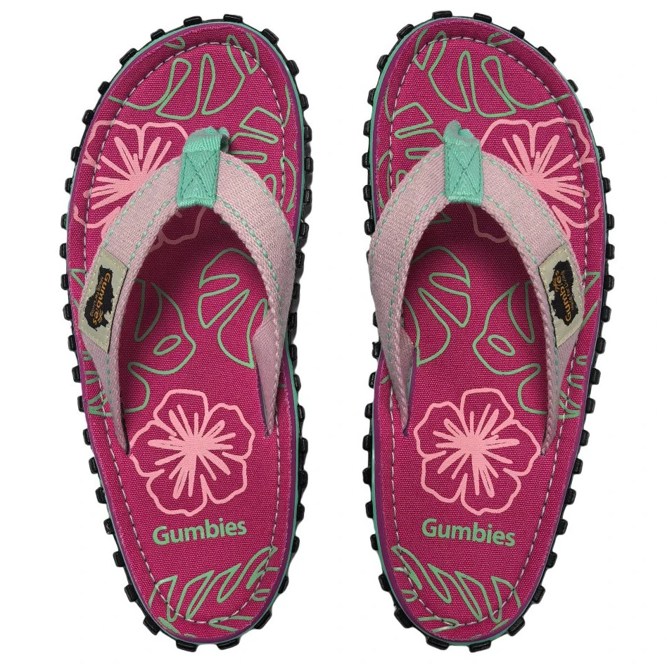 Dizajnové žabky Gumbies Blush Hibiscus sú veselé, hravé, pohodlné a ekologické.