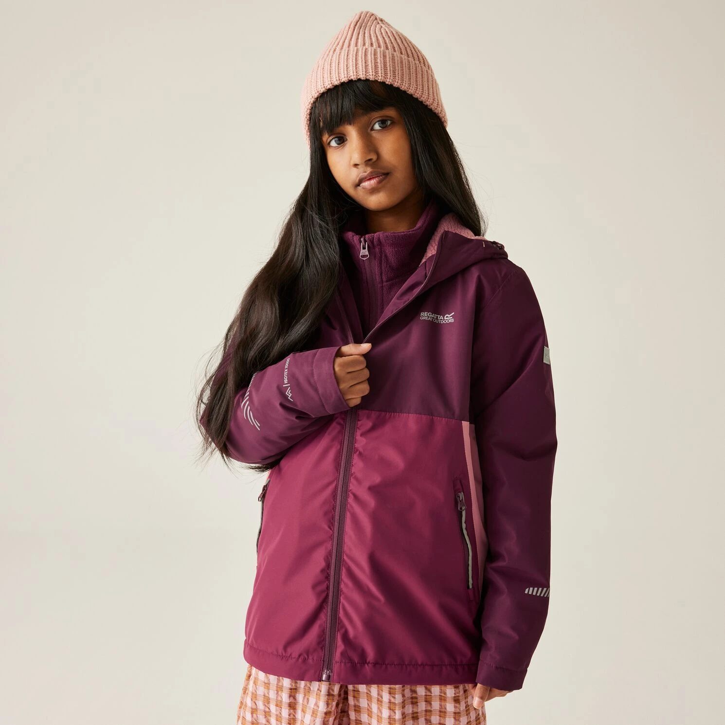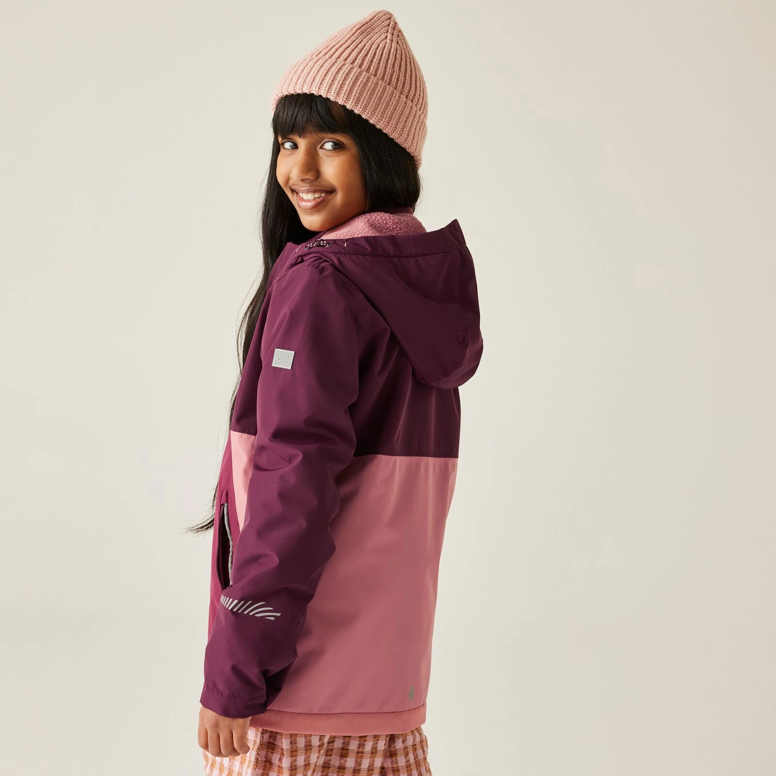 Detská bunda Hillain Warm Lined od značky Regatta má podšívku z borg fleecu a reflexné prvky. Pevná kapucňa a vrecká na zips ju robia ideálnou na školské dni alebo vonkajšie hranie v nepredvídateľnom počasí.