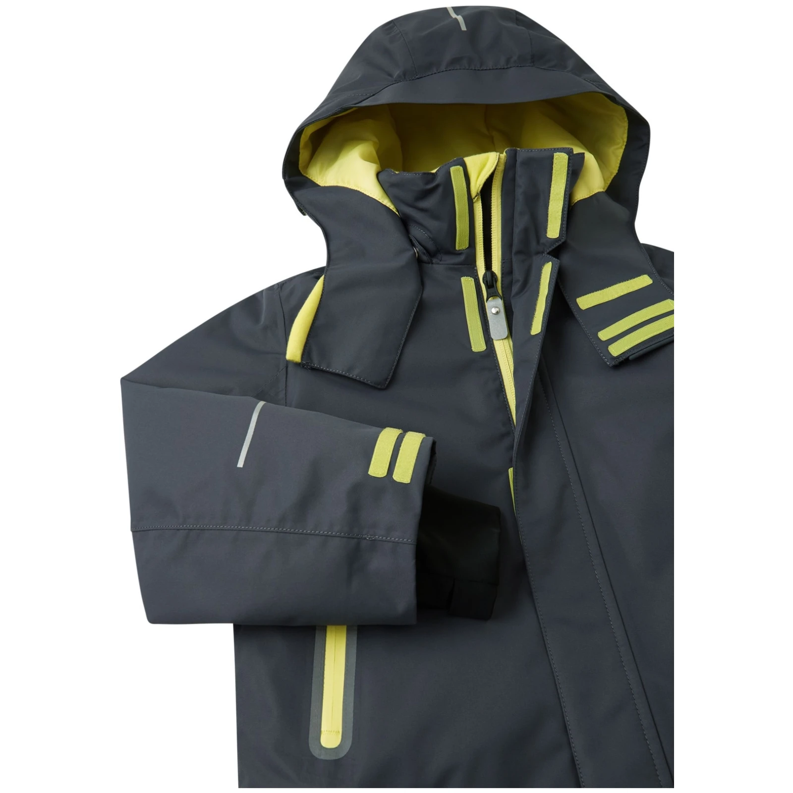 Nastaviteľný lem a rukávy poskytujú dobrú ochranu. Snehový pás na leme udržuje sneh preč a môžete ho odstrániť, keď idete do mesta. Odnímateľná a nastaviteľná kapucňa je bezpečná, pretože sa ľahko dáva dole, ak sa o niečo zachytí. Má tiež klopu proti vetru na ochranu krku. Na rukáve je vrecko na skipas . Bundu môžete tiež sušiť v sušičke, takže sa o chvíľu vrátite na zjazdovku.