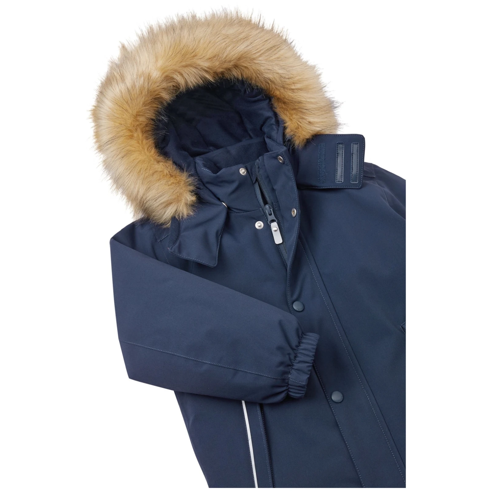 - bezpečná, o dnímateľná a nastaviteľná kapucňa s odnímateľným lemom z umelej kožušiny