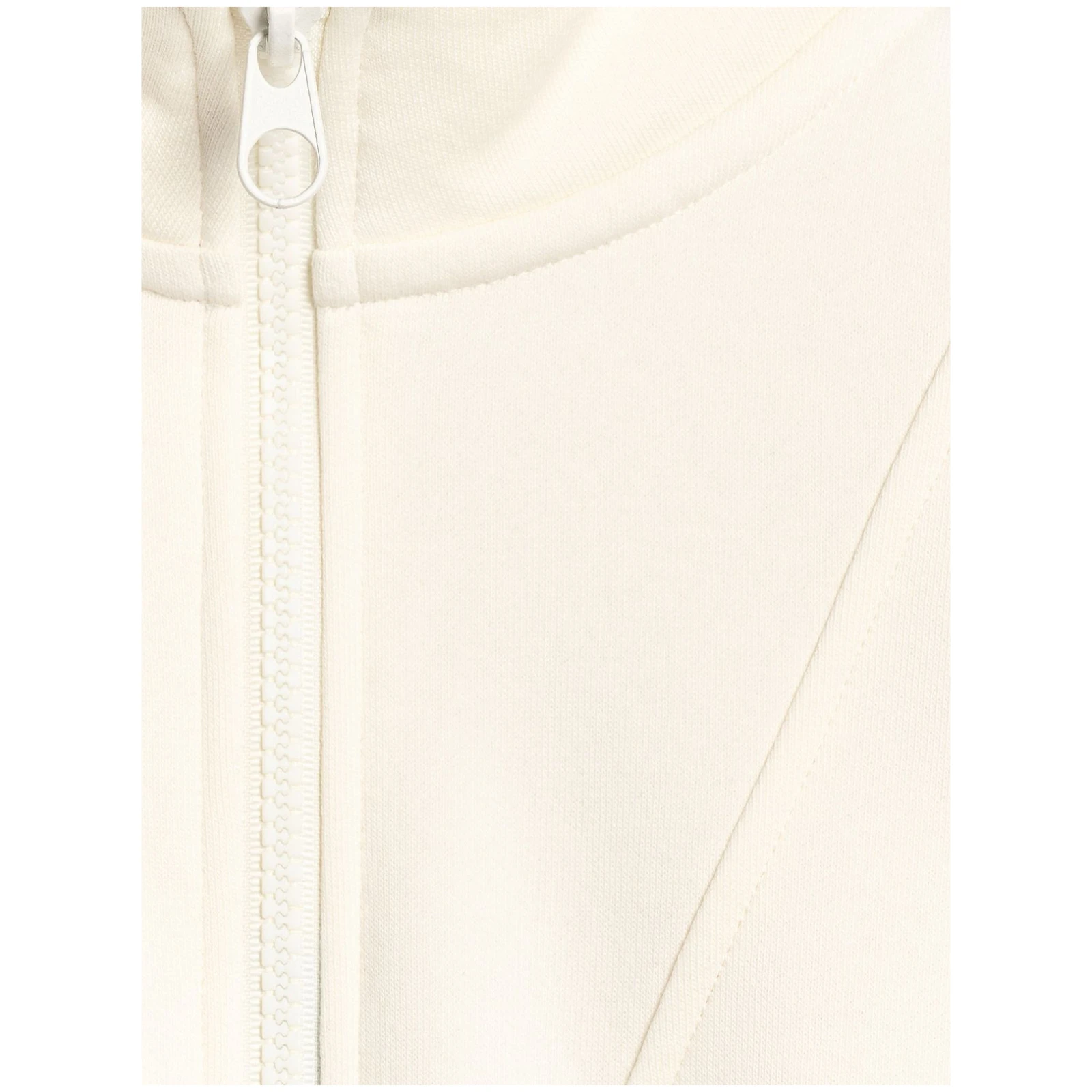 Gramáž 300 g/m2 zaisťuje pevnú štruktúru a optimálnu úroveň tepla. Materiál tvorí kombinácia 80 % bavlny pre pohodlie a odolnosť a 20 % polyesteru pre dlhšiu životnosť a tvarovú stálosť. Mikina má stojačik so zapínaním na zips pre ochranu krku a reguláciu teploty, manžety s pružinkou a spodný lem s elastickou gumou, ktoré držia tvar a dobre sedia na postave. Minimalistický vzhľad bez vreciek dopĺňajú spustené ramená, ktoré podčiarkujú ležérny charakter.