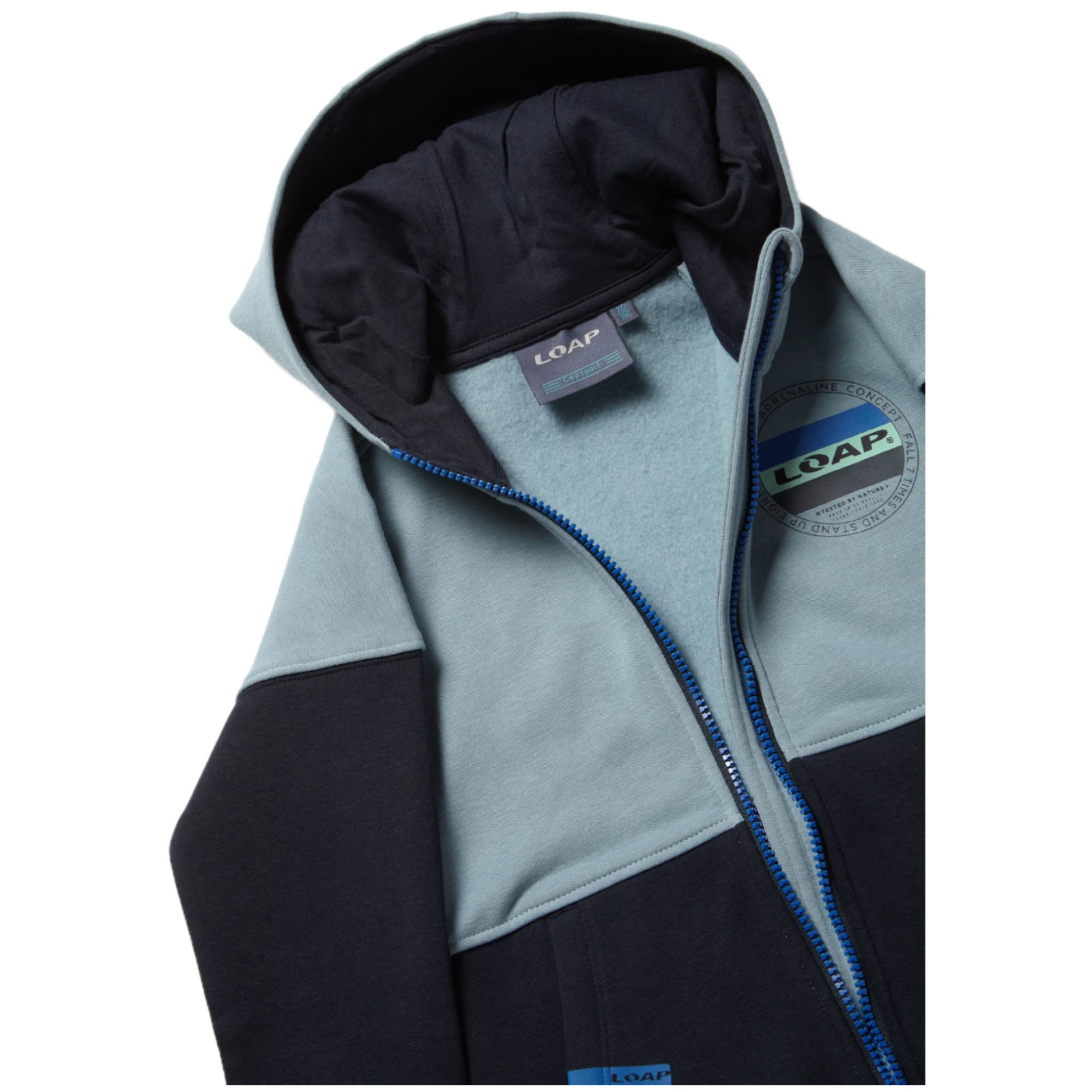 Klasický strih mikiny dopĺňajú spadnuté ramená a štýlová kapucňa, ktorá dodáva mikine moderný vzhľad. Rukávy a spodný okraj sú zakončené nápletmi, ktoré zaisťujú, že mikina dobre sedí a udržiava teplo. Kostený zips po celej dĺžke umožňuje jednoduché obliekanie a krytie zipsu pri brade minimalizuje riziko nepríjemného otlaku pokožky.