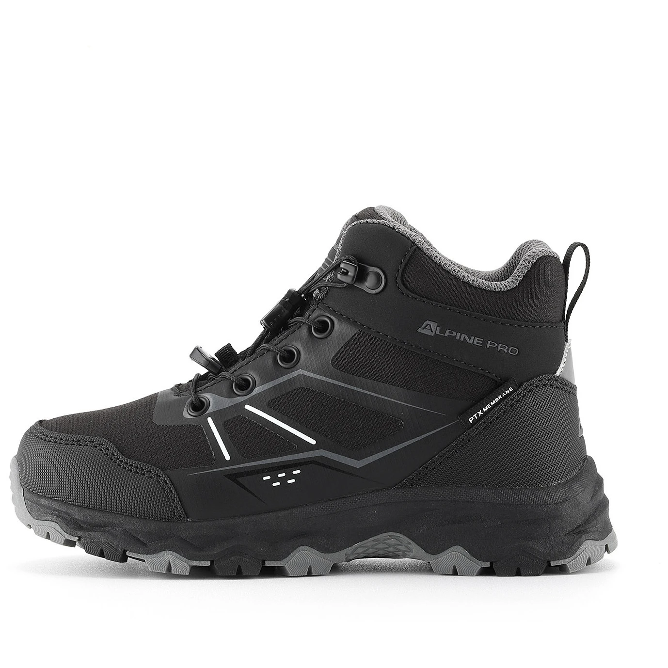 Detské outdoorové topánky Moteno od Alpine Pro s membránou PTX pre nepremokavosť, paropriepustnosť a pohodlie za každého počasia, odolné proti vetru a rýchloschnúce.