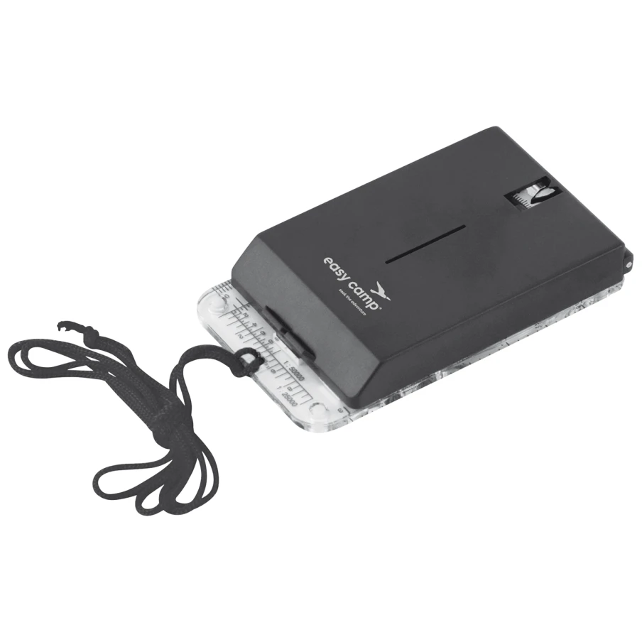 Kompas Map Compass Mirror od kvalitnej dánskej firmy Easy Camp je vybavený zrkadlom, smerovkou svietiacou v tme, sklonomerom, lupou, silikónovou podložkou pre lepšie trenie a otáčajúcim sa ciferníkom. Možno zložiť do kompaktného balenia a obsahuje označenie pre meranie na mape. Kompas je plnený olejom a jeho súčasťou je šnúrka na krk.