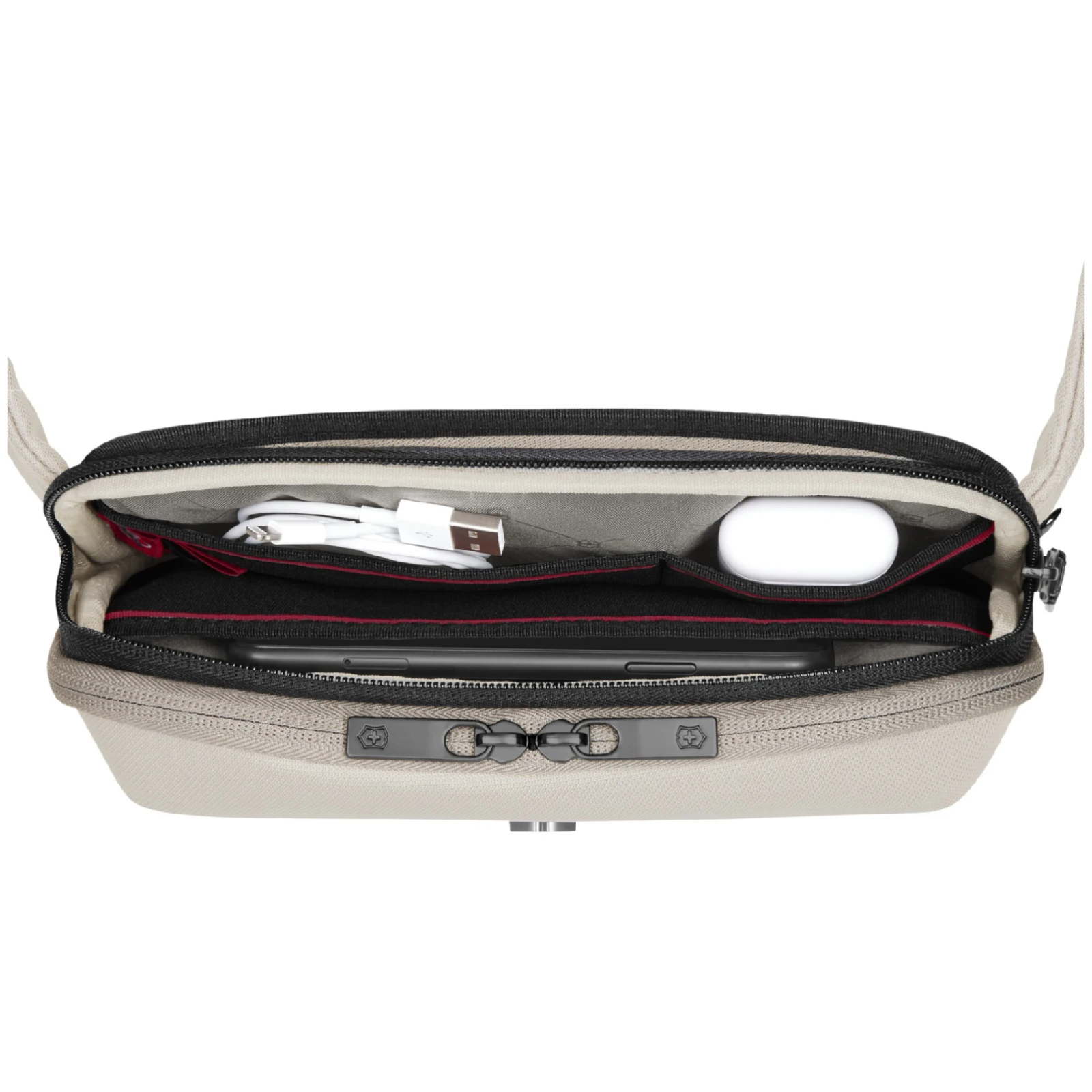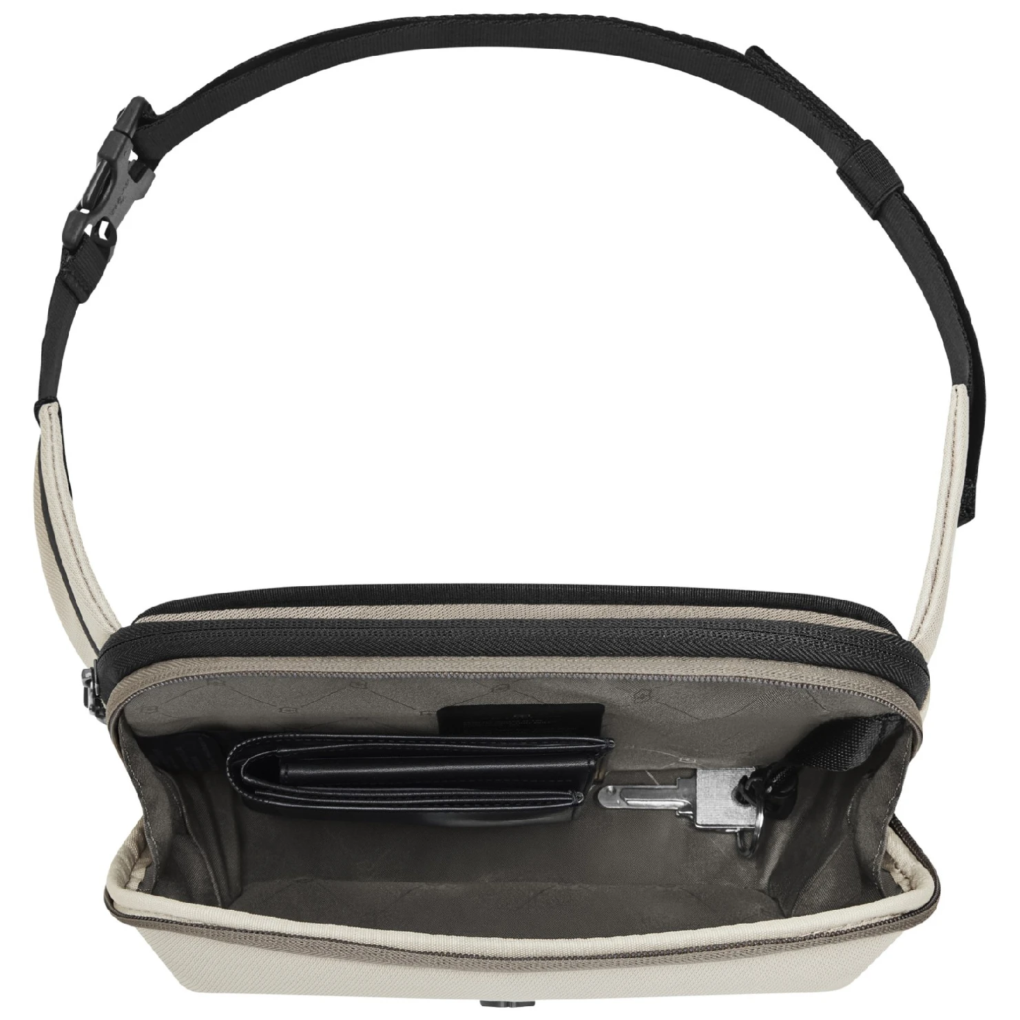 Taška cez rameno ponúka premyslené organizačné vrecká, ktoré uľahčia uloženie telefónu, kľúčov aj ďalších drobností. Nechýba vrecko odolné proti poškriabaniu pre telefón, vrecko na slúchadlá, skryté zadné vrecko ani pútko na kľúče, takže svoje veci môžete nosiť bezpečne a prehľadne.