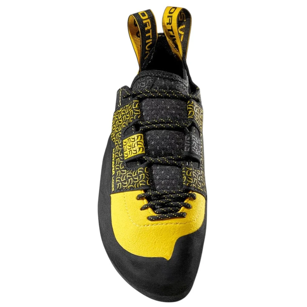 Lezečky majú citlivú a presnú špičku, ktorá sa dokáže efektívne oprieť aj o veľmi malé stupy v previse. Plná medzipodošva Laspoflex 1,1 mm poskytuje stabilnú oporu, zatiaľ čo technológia P3 System (Permanent Power Platform) udržuje dlhodobo tvar a agresivitu topánky. Technicky riešená päta drží aj pri náročných heel hook krokoch.