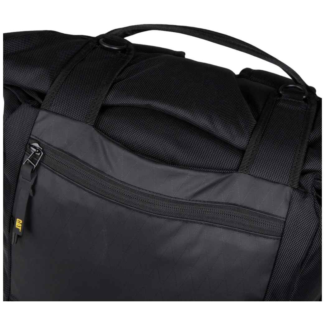 Odolný a funkčný batoh CAT Signature Utility X Rolltop je navrhnutý pre maximálnu praktickosť pri každodennom nosení aj náročnejších výpravách. Zosilnený materiál s diamantovým ripstopom chráni obsah, zatiaľ čo hlavná priehradka s rolovacím uzáverom a zipsom poskytuje flexibilný objem a ľahký prístup. Vnútorné polstrované vrecko na notebook je prístupné aj z boku cez samostatný zips. Batoh dopĺňajú odnímateľné kompresné popruhy, niekoľko vreciek pre organizáciu a pohodlné nosenie zaisťujú nastaviteľné ramenné popruhy a polstrovaná chrbtová časť z priedušnej sieťoviny.