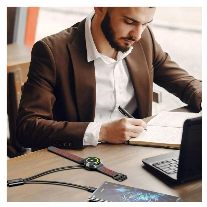 Kábel umožňuje kombinované nabíjanie – hodinky a ďalšie zariadenia možno nabíjať súčasne, čím šetrí čas a počet potrebných nabíjačiek. Pri použití USB-C ponúka výkon až 60 W, čo stačí aj pre tablety alebo notebooky.