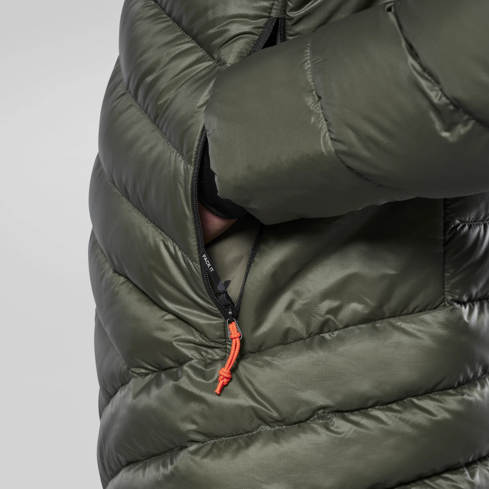 Bunda ponúka neobmedzený pohyb vďaka ergonomickým rukávom zabraňujúcim zdvihnutiu lemu pri lezení, jednoduchú zbaliteľnosť do vlastného vrecka, 2cestný predný zips aj elastické vnútorné manžety. Úložný jednoducho zaisťujú 2 bočné vrecká na zips, náprsné vrecko na zips a vrecko s integrovaným baliacim riešením.