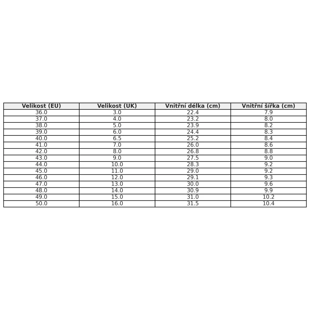 - Veľkosť topánok (EU)