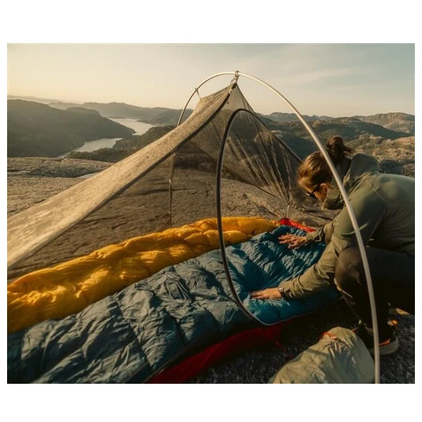 Má výplň z kačacieho páperia s objemom 600 cuin a pomerom páperia 85/15, čo dokonale izoluje. K tomu prispieva novo tvarovaný tepelný golier, ktorý tesne obopína ramená a zabraňuje úniku tepla. Kapucňa má sťahovacie šnúrky na oboch stranách a golier chrániaci tvár. Pohodlný 3D mumiový tvar zlepšuje tepelnú izoláciu a poskytuje pohodlie. Oblasť okolo chodidiel je špeciálne tvarovaná ako žraločia plutva, čo umožňuje, aby chodidlá zostali počas noci natiahnuté v prirodzenej polohe.