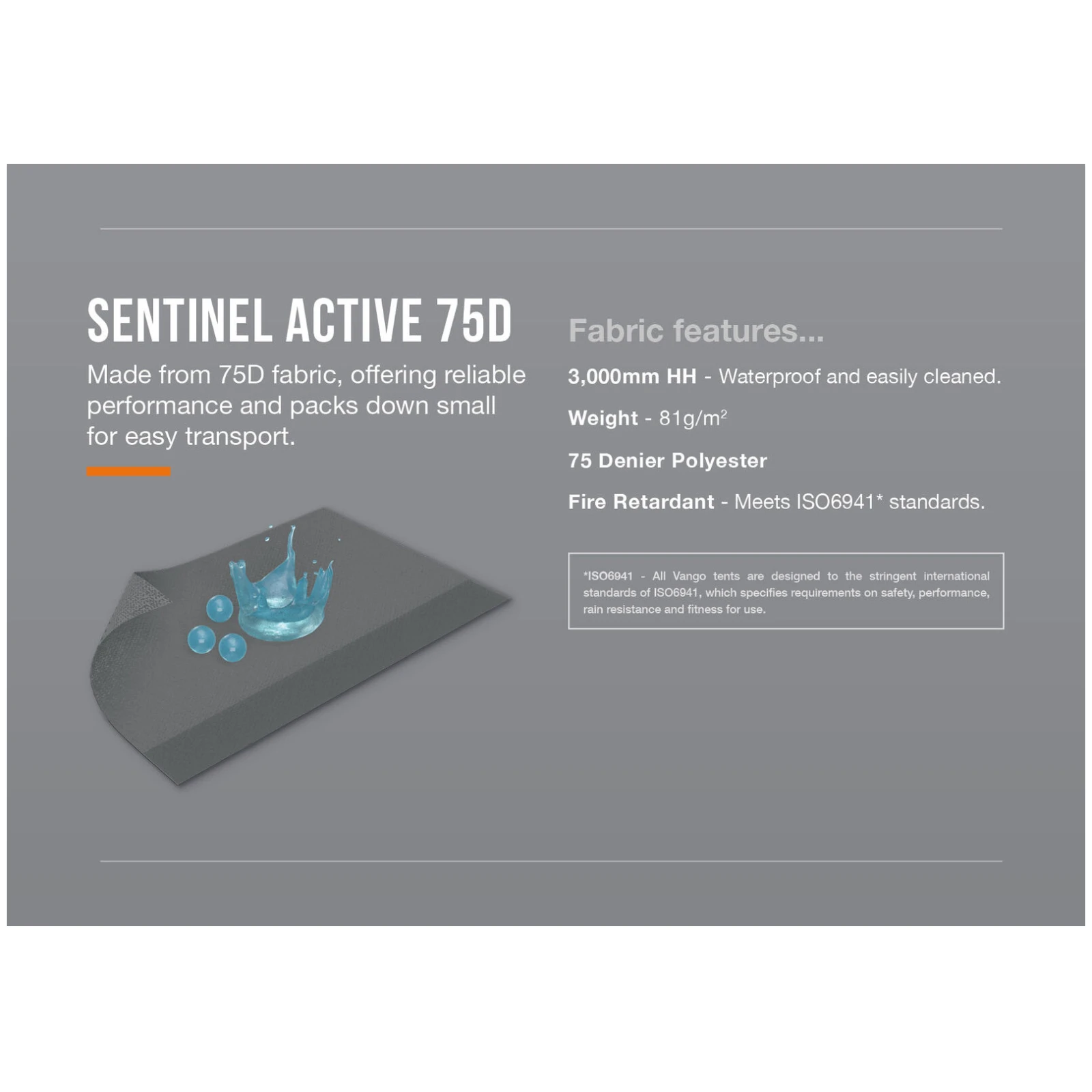 Konštrukcia je tvorená ľahkými a odolnými sklolaminátovými tyčami Vango PowerFlex, ktoré zabezpečujú stabilitu pri zachovaní nízkej hmotnosti. Použitá tkanina Sentinel Active 75D je vodeodolná (HH 3 000 mm), ľahká a skladná, takže v karavane alebo dodávke zostane viac miesta pre ďalšie vybavenie. Novinkou je systém TriSpan Tunnel Support, ktorý spevňuje tunel, zvyšuje jeho výšku a vytvára otvorenejší a lepšie využiteľný priestor medzi vozidlom a markízou.