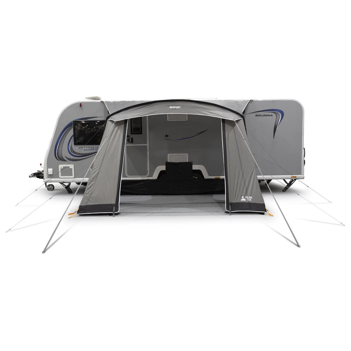 Súčasťou balenia je protiveterná zástera a kryt podbehu kolesa, ktoré zvyšujú tepelný komfort a chránia pred prievanom. Stabilitu v náročných podmienkach podporuje systém TBSII, nastaviteľné kotevné body, oceľové kolíky aj popruhy Storm popruhy. Praktický závesný systém SkyTrack II umožňuje ľahké upevnenie osvetlenia alebo úložných doplnkov. Palma 330 je tak spoľahlivým a všestranným predstanom pripraveným na každé dobrodružstvo.