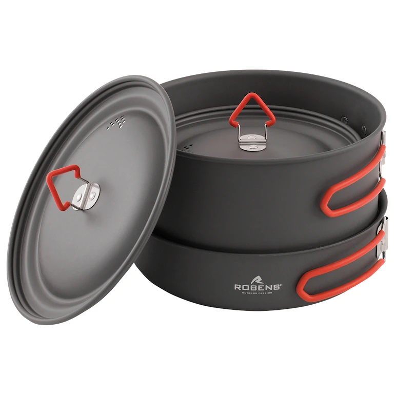 Robens Basecamp Pro Ceramic Cook Set XL je skladacia hliníková súprava riadu s keramickým povrchom pre pohodlné varenie a veľmi nízkou hmotnosťou, ktorú využijete pri kempovaní.