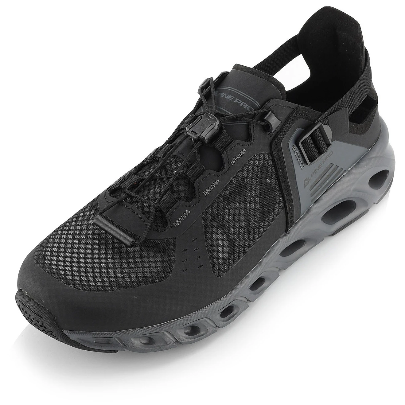 Topánky Alpine Pro Kiage sú navrhnuté pre maximálny komfort v horúcich letných dňoch. Ich najväčšou zaujímavosťou je konštrukcia päty, ktorú možno ľahko zošliapnuť, čím topánku behom sekundy premeníte na praktické a pohodlné papuče. Zvršok z ľahkej textílie a odolnej syntetiky v kombinácii s ventilačným systémom Air Flow zaisťuje špičkovú priedušnosť a udržuje nohy svieže aj pri dlhšom nosení.