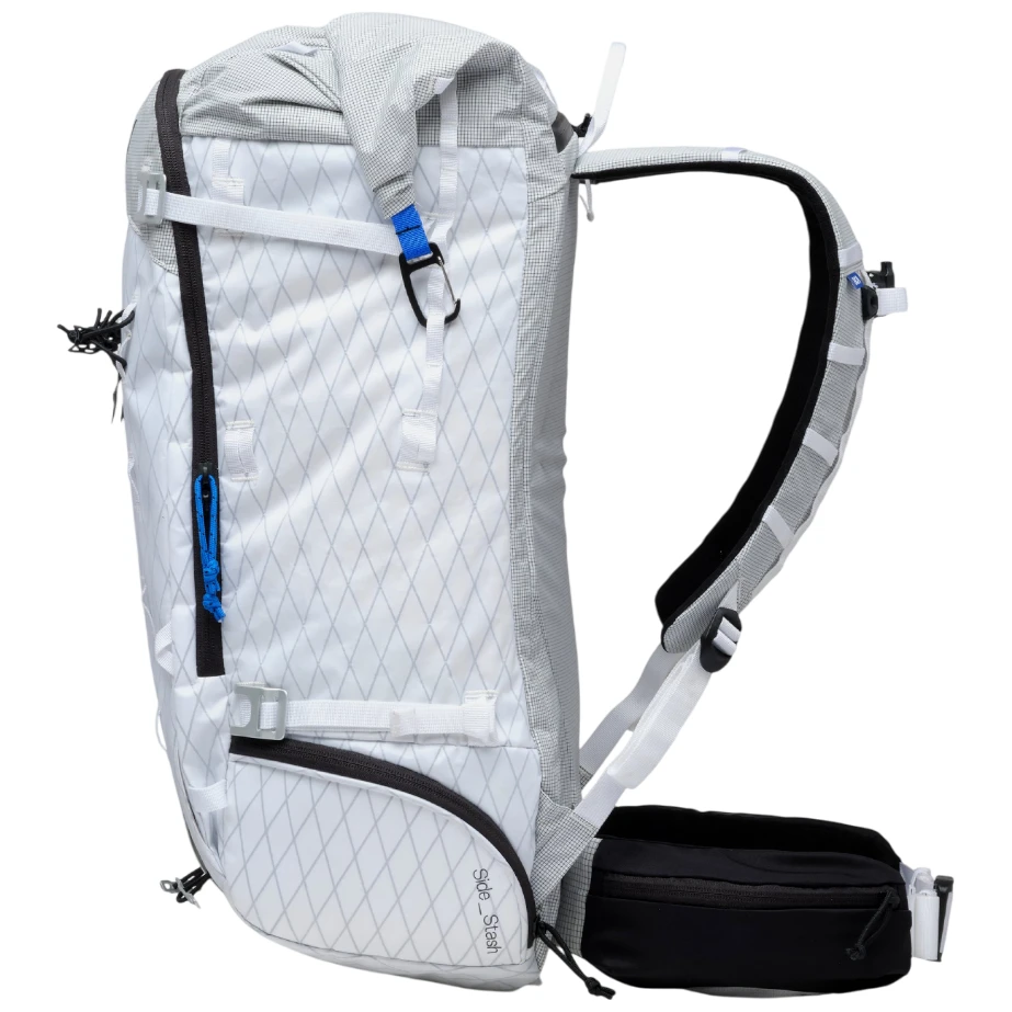 Ďalšie praktické prvky zahŕňajú dve vrecká na bedrovom páse pre drobnosti, kompresné popruhy s viacerými úchytmi a kompatibilitu s BC Link vysielačkou aj hydratačným systémom – čo oceníte pri dlhších túrach. Navyše je batoh vyrobený z odolných, ale ľahkých materiálov, konkrétne X‑Pac VX21 (60 % nylon, 40 % polyester) a Robic nylon 210D, a váži iba 1 166 g.