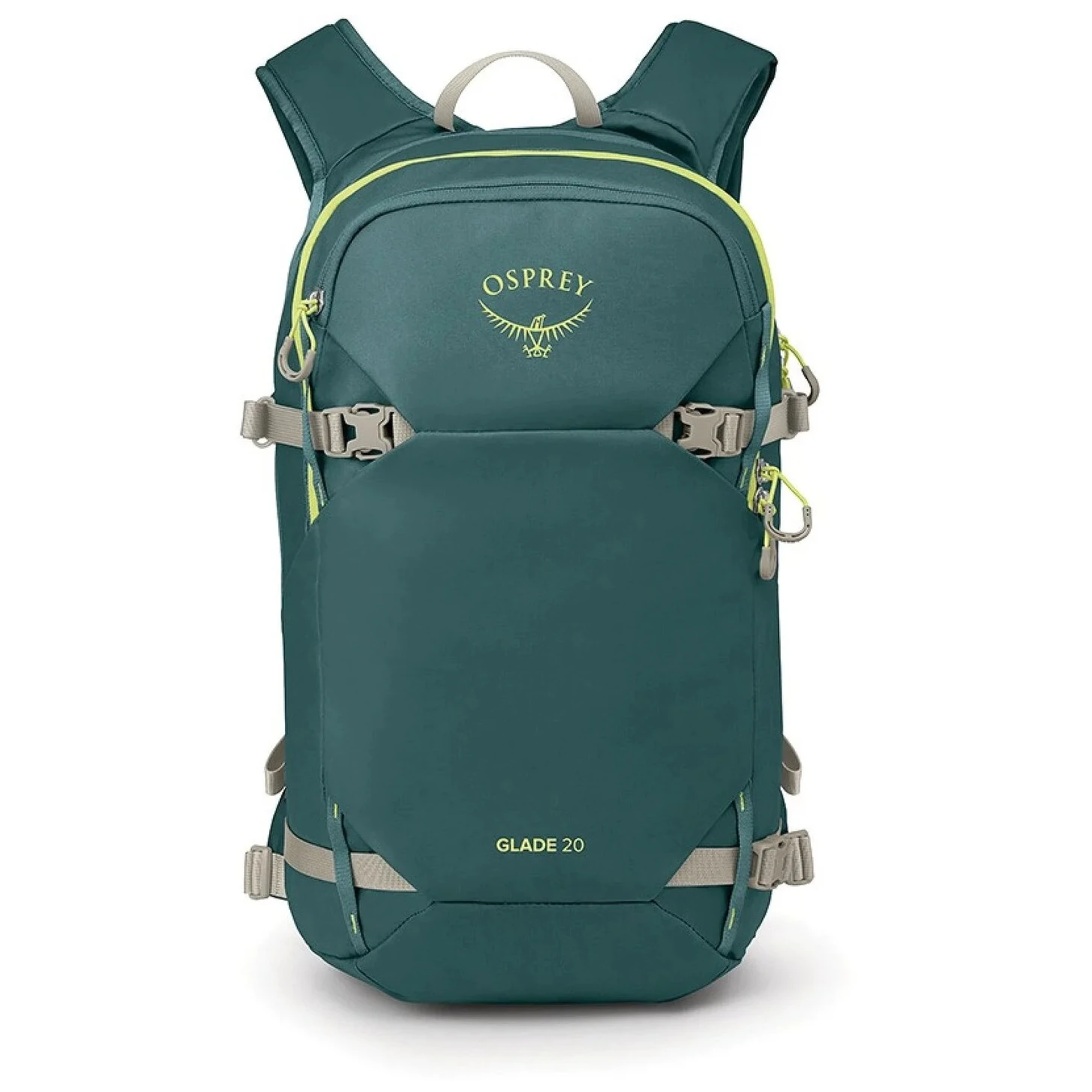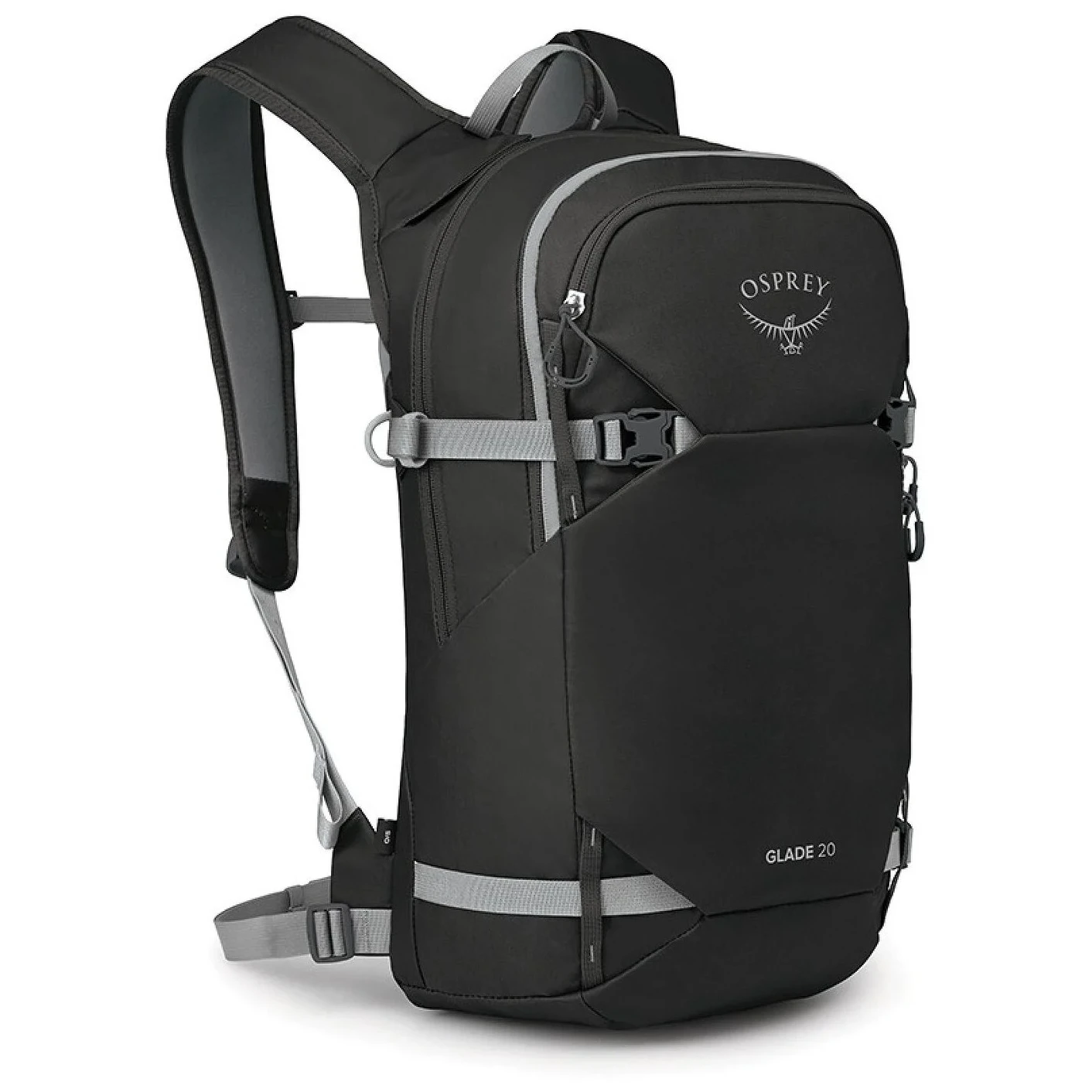 Batoh Glade 20 ponúka premyslený systém nosenia výbavy – lyže je možné upevniť diagonálne alebo do tvaru A, snowboard či snežnice potom pohodlne na čelný panel. Samozrejmosťou je samostatná priehradka pre lavínovú výbavu, aby bolo všetko potrebné vždy po ruke. Hlavná komora sa ľahko otvára pomocou praktického J-zipu a vnútri sa nachádza aj vrecko na hydrovak (rezervoár sa predáva samostatne).