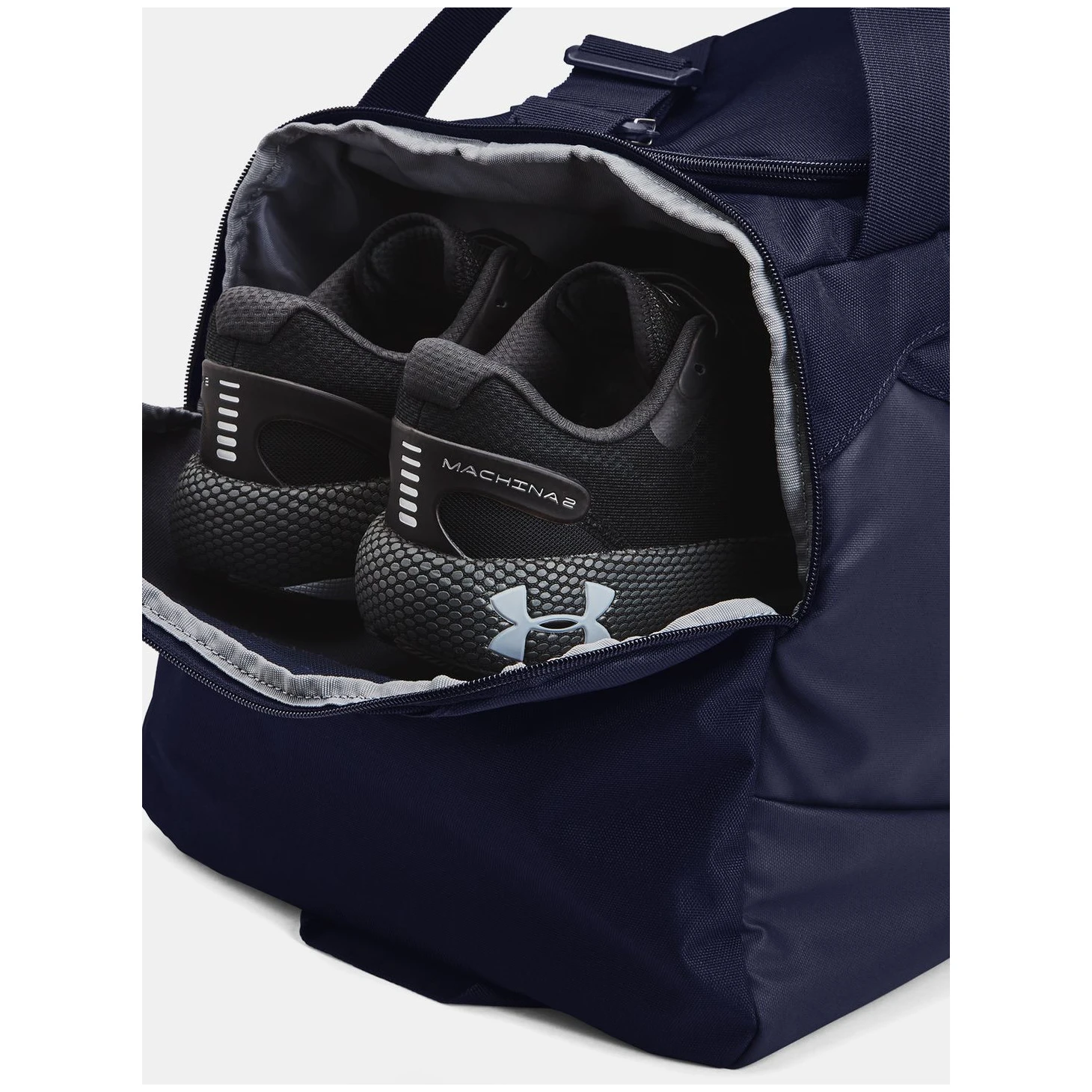 Priestranná športová taška cez ramenoUnder Armour model Undeniable 5.0 Duffle MD z materiálu Storm poskytne veciam ochranu pred vodou . Dno a boky sú vyrobené z extra odolného materiálu proti predratiu. Usporiadanie tašky sa rozdeľuje na veľké priedušné vrecko na oblečenie alebo topánky a ďalšie vnútorné vrecká pre jednoduchšiu organizáciu. Komfortné uši na nosenie a dlhý nastaviteľný popruh cez rameno uľahčia manipuláciu a cestovanie. Pútko pre možnosť upevnenia ďalších vecí na prepravu.