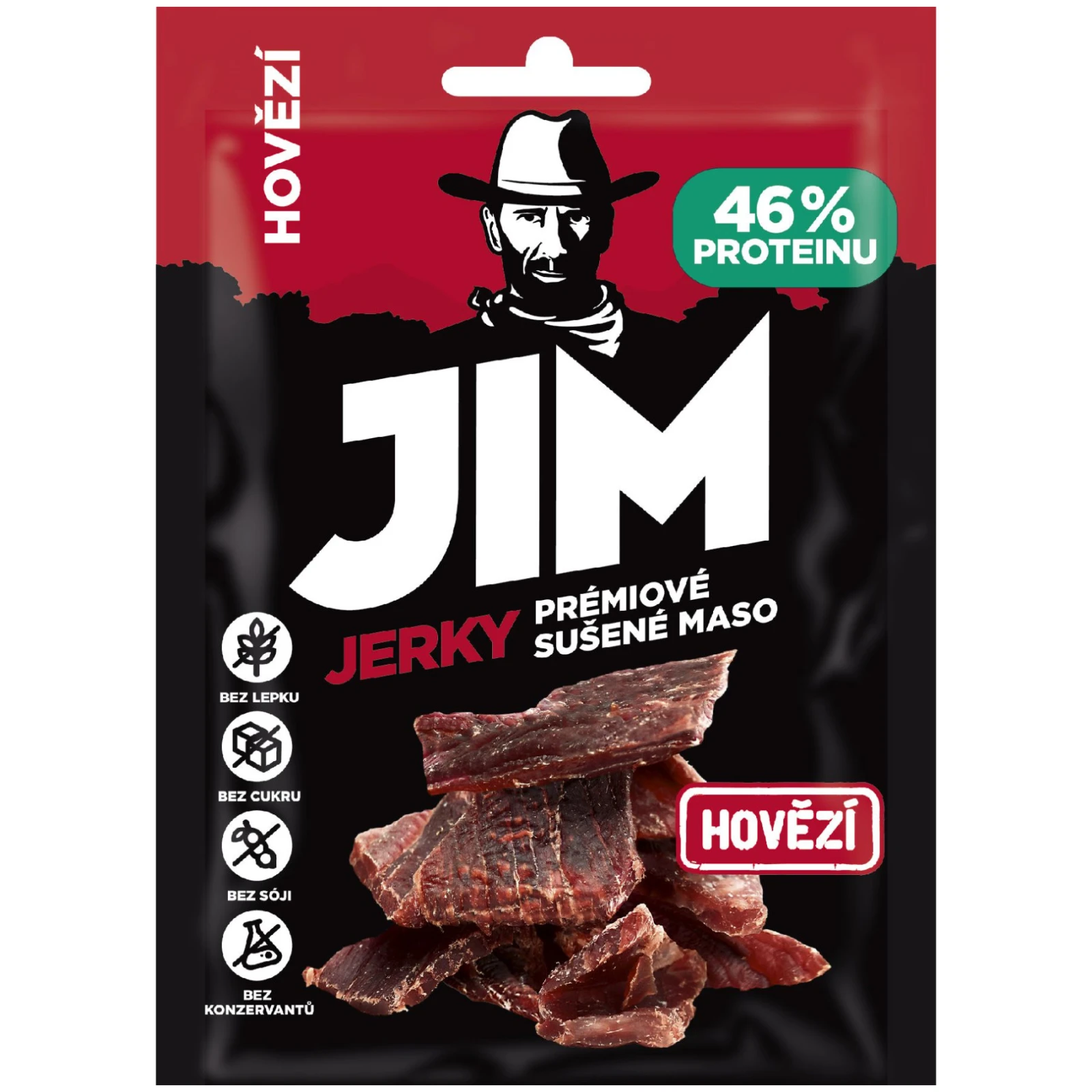 Sušené mäso - Jerky hovädzie 23 g od firmy Jim Jerky je plné jemne zaúdené chuti, šťavnaté a jemné v textúre. Skvelý zdroj bielkovín zbalený na cesty!
