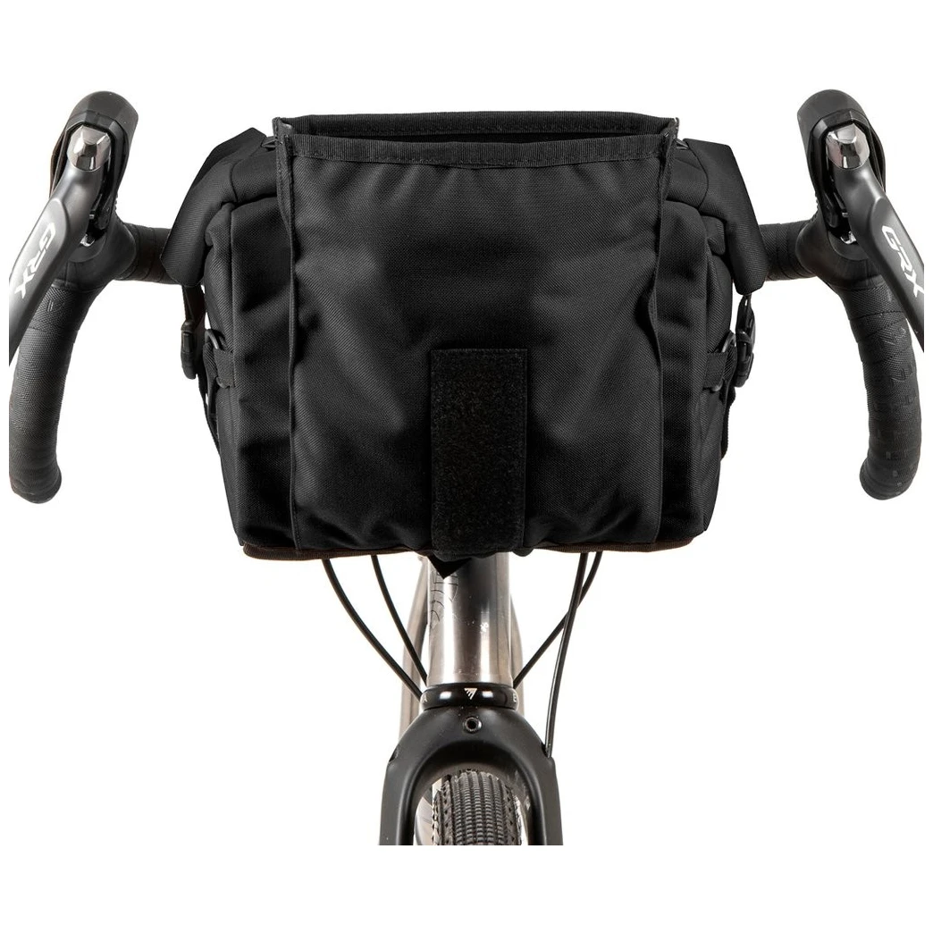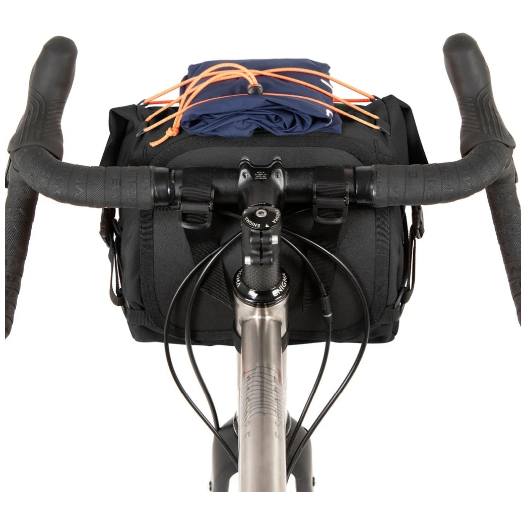 Vďaka vnútornej výstuži, škrupinovému chrbtu a bočnému sťahovaciemu systému drží brašna kompaktný tvar aj pri plnom zaťažení. Pripevnenie k riadidlám je jednoduché a nie je k nemu potrebné žiadne náradie ani držiaky. Penové prvky a pružinové zámky zaisťujú stabilitu brašne aj v náročnejšom teréne. Brašna zo 100% vodeodolného textúrovaného nylonu je ručne vyrábaná v britskom grófstve Yorkshire.