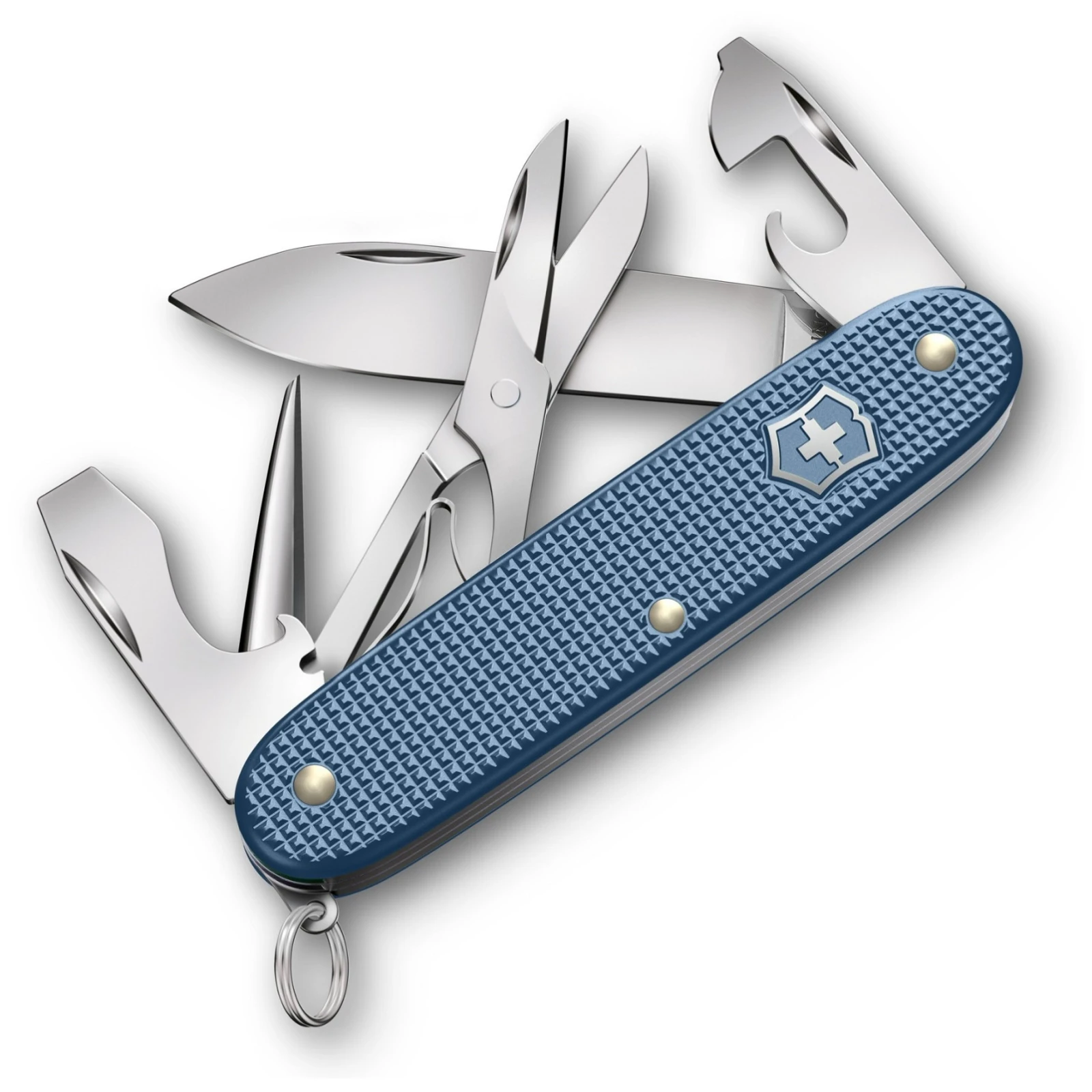 Praktický vreckový nôž Pioneer X sa stal už modelom v trvalej ponuke značky Victorinox. Vďaka nízkej hmotnosti iba 95 gramov, ktorú dosahuje napriek veľmi robustnej konštrukcii a použitým kvalitným materiálom. Tento nôž je dodávaný v striebornom prevedení s červeným krížom v erbe. Teraz je nanovo vybavený funkciou nožnice.
